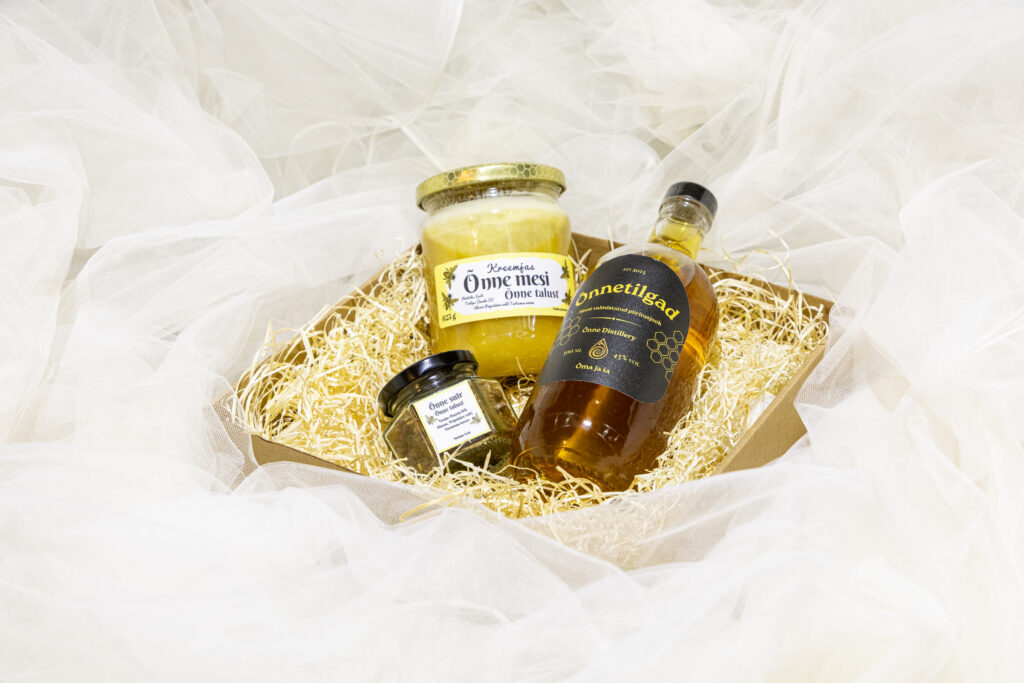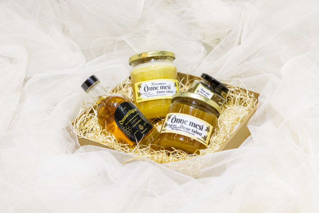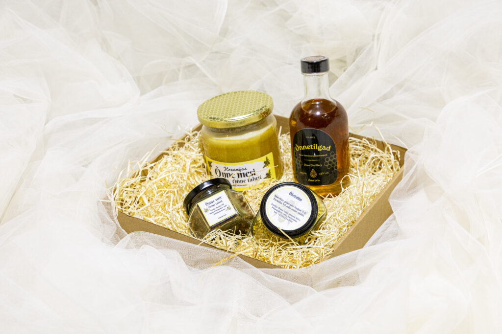 - 20–35 € – klassikaline kinkepakk (mesi, küünal, Õnnetilgad, suir)