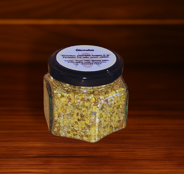 Õietolm on õite tolmukatelt pärit peen pulber. Mesilased tolmu ei sorteeri, seega on õietolmu värvus vastavalt korjele varieeruv kuid enamasti kollane. Meie saame selle kätte taru lennuavale paigaldatud koguja abil. 5g õietolmu päevas on profülaktiline ja tervisele toniseeriv energiapommike. Pakendatud klaaspurki, hind 3€.
